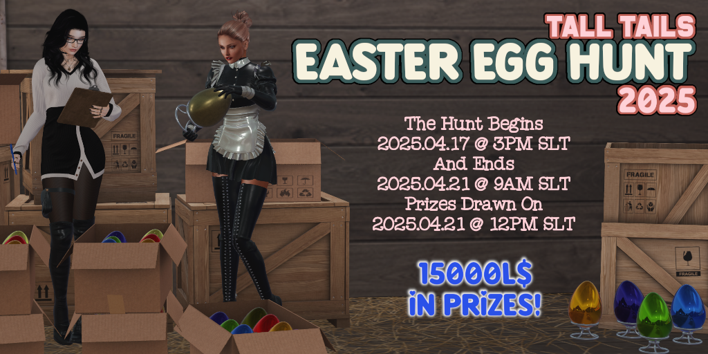 At 12PM SLT on 21/04/2025 Axelle and Pinkie will be hosting the prize draw event, where names will be drawn to determine who gets what prizes.