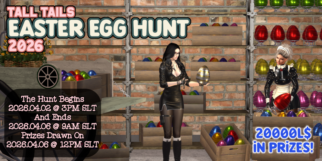 The Egg Hunt will begin at 3PM SLT on 02/04/2026, eggs will be scattered across both Tall Tails Meadow, Tall Tails Pike and Stoat Island in non-residential areas. You can locate Tall Tails Meadow by clicking on this link here.